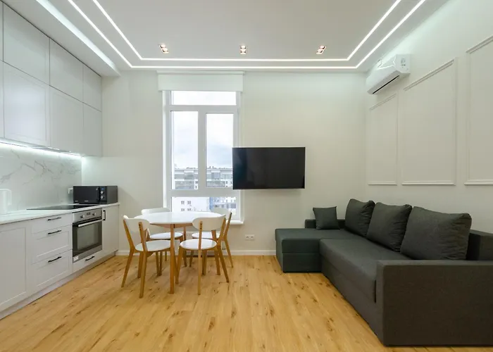 Located about a 15-minute walk from Taras Shevchenko Park, Petrovdom Apartments 5-46 In Rc Zhemchuzhyna 38, Zhylianska 68 Kyiv overlooks the city. Wi-Fi and private parking are provided for guests' business or leisure needs.